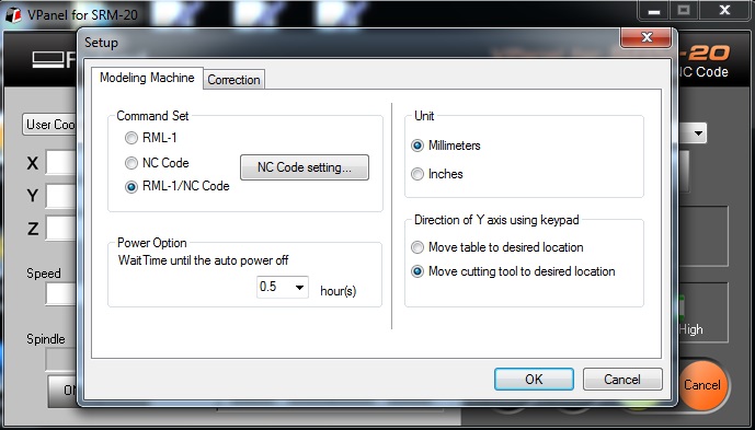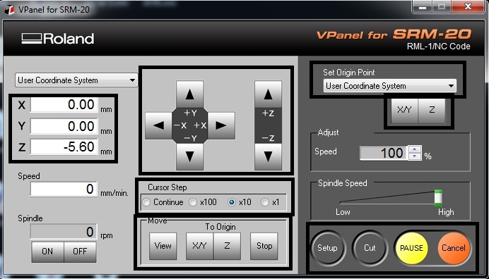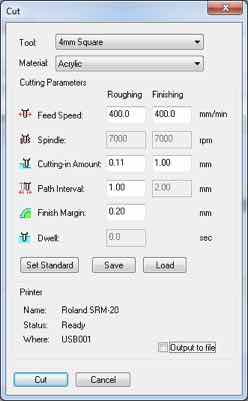The rml file created from the fab modules interface have to be fed to the Roland SRM-20 software Vpanel for milling.