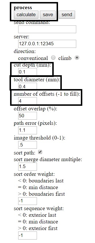 The other parameter is the number of offsets. This is the number of times the same copper is milled with some offset to make sure that no part of the trace is left. We can also use -1 to have the offset to a very high value. This is the best but takes a long time.