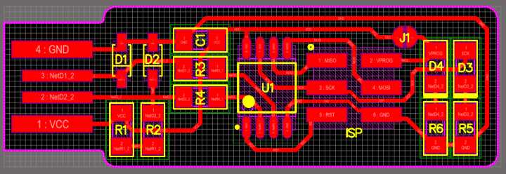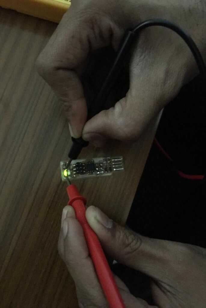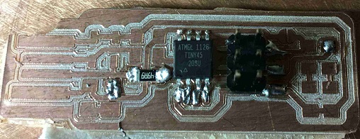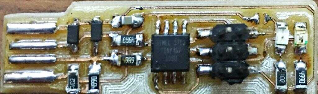 I soldered the components using a micro soldering iron and solder rosincore wire of diameter 0.4 mm. I also applied solder flux paste on the attiny45 and header pins before applying the solder. I checked all the components with the multimeter after soldering to make sure that the connection was there.