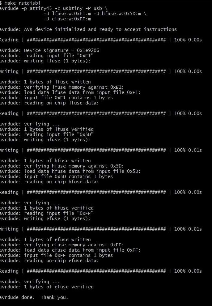 Now, we are all set to run “make rstdisbl”. This makes our FabISP as a programmer.