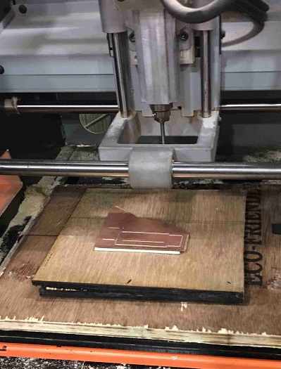 The outline was cut keeping the tool diameter of 1 mm using the same V-bit. The stock thickness is 1.7 mm for the copper FR1 board.