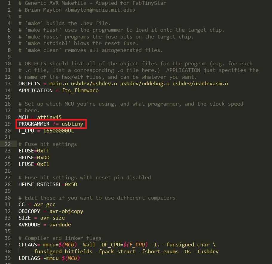 Next we need to edit the makefile in a editor such as Sublime Text for the programmer.