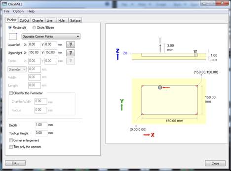 A pocket is defined to be cut.
