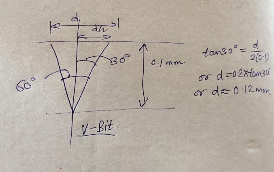 The tool diameter is the diameter of the tool used. In our case, we used a V-bit. Since we want to limit the trace width to 0.4 mm so the maximum tool width should be in this range of 0.35 to 0.4 mm. Since the angle of our bit is 60 degrees so we are safe.