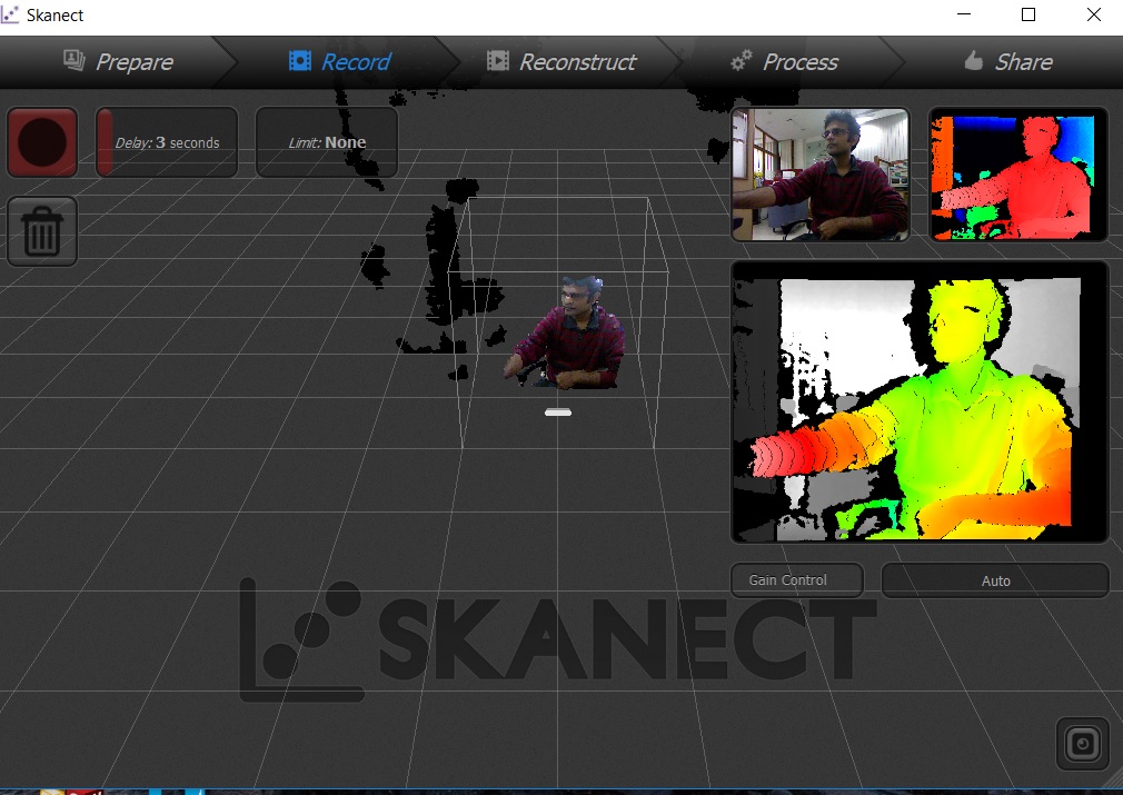 The Skanect GUI is fairly easy to use. I chose to scan a body which was myself sitting in the chair.
