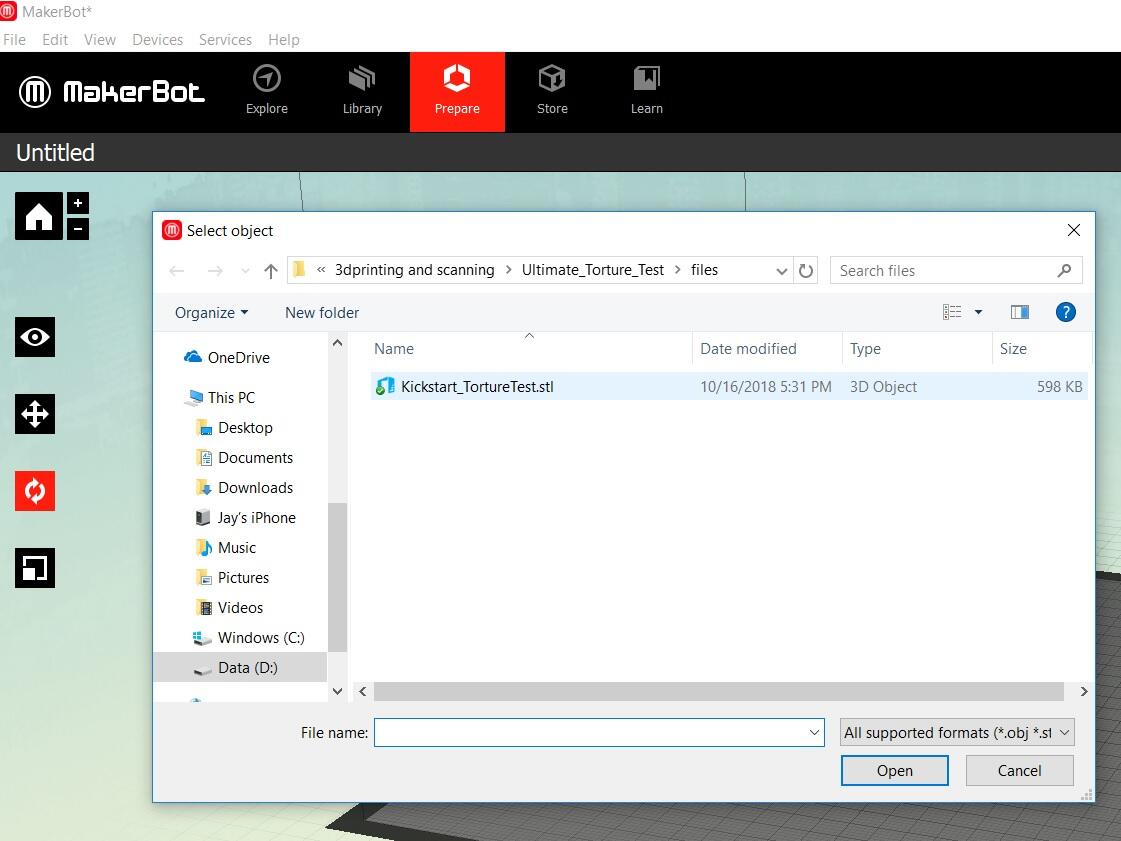 First we opened the .stl file for the ultimate torture test.