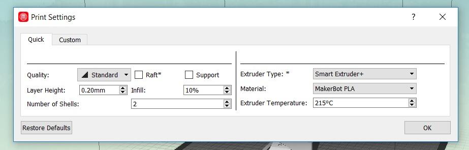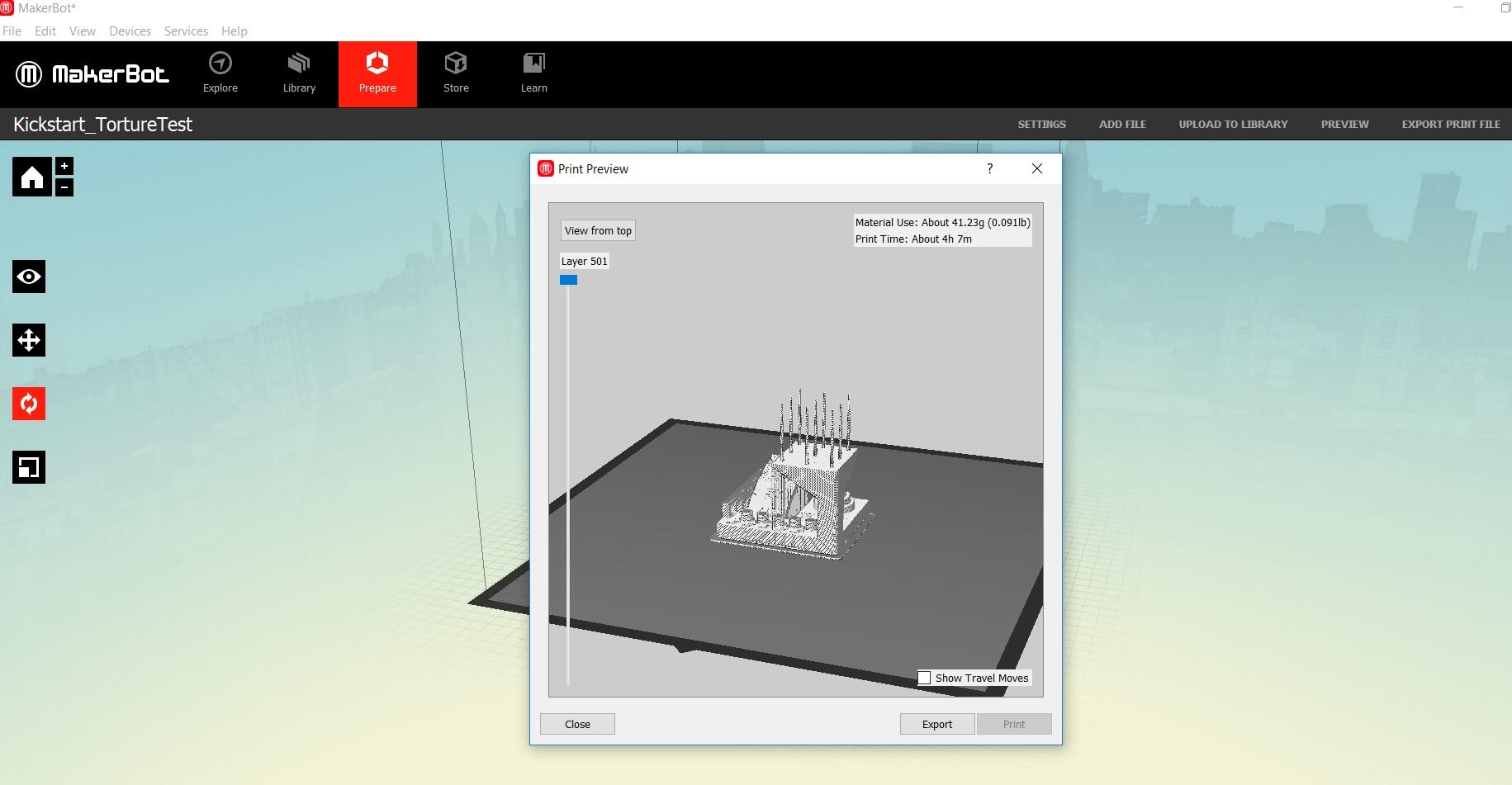 Once we were happy with the settings, we previewed the file and then exported it to .makerbot extension.