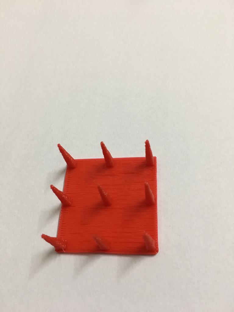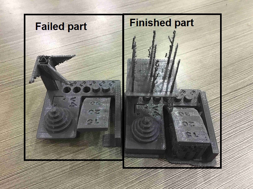 This shows the test piece finished printing.