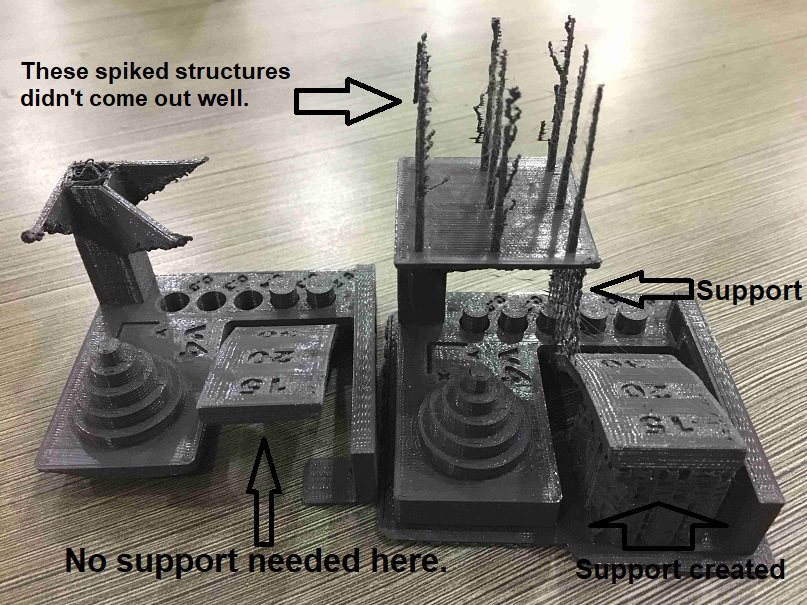 The dimensional accuracy test component, bridging test component and negative space tolerance test components didn’t come out right.