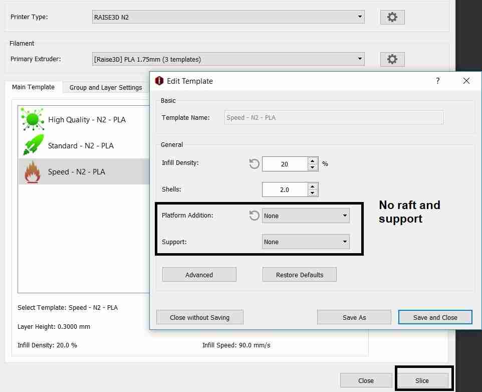 I selected the right printer type and the print quality parameters. Raft was selected with no support.