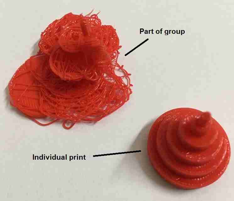 Here, we compare the component printed in the group vs it printed individually later.