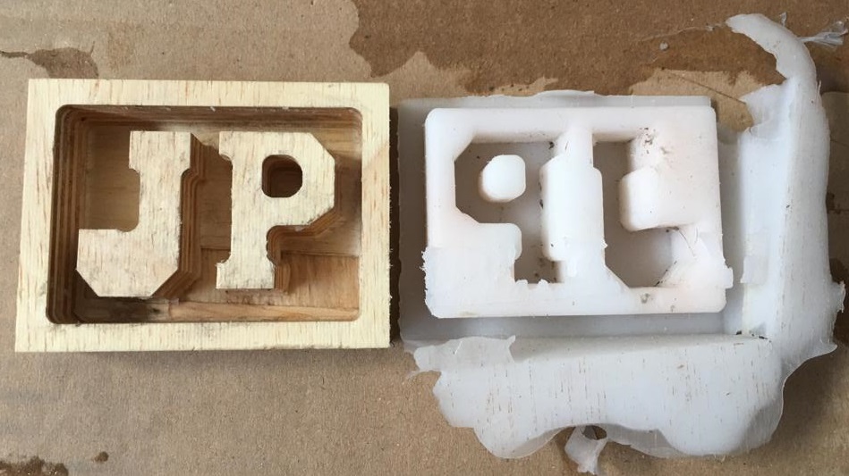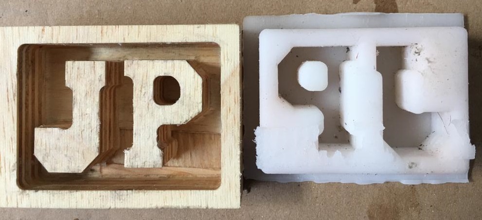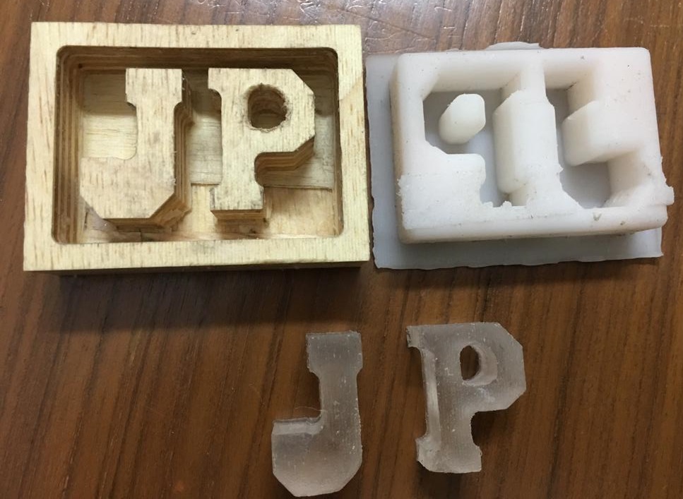 b. I did miss out on creating a bounding wall around the letters J and P so that my flexible silicone mold could have had some thickness. I would keep that in mind when I do more molding and casting work.