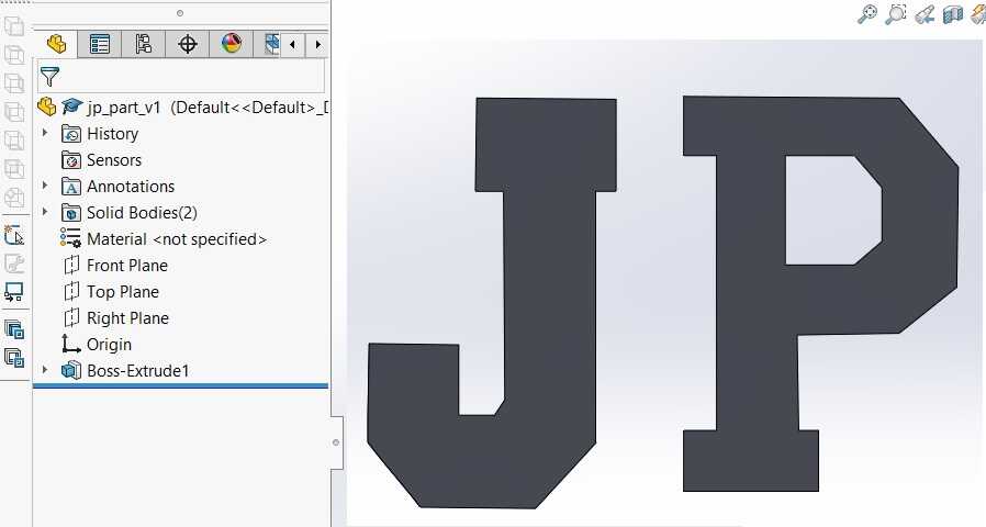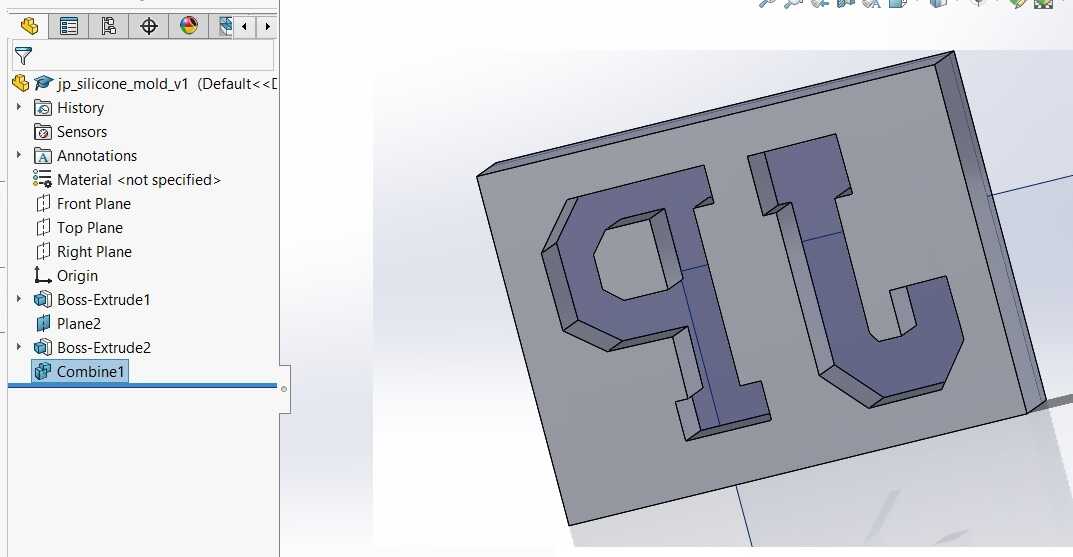 Download for the CAD in Solidworks for the final casted part which is the letters J and P.