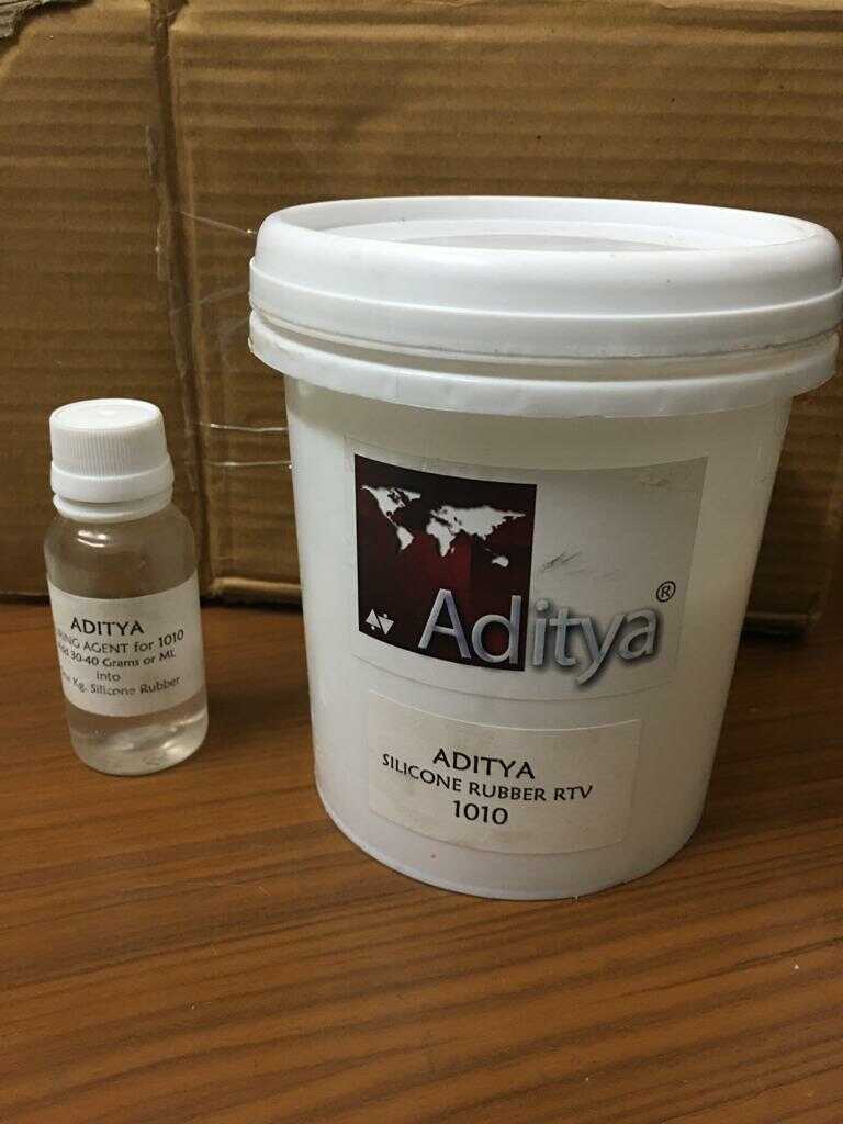 This is relatively cheaper and locally available in India. We need to mix about 30-40 gm of curing agent in 1000 gm of silicone. The curing time is 24 hours at room temperature.