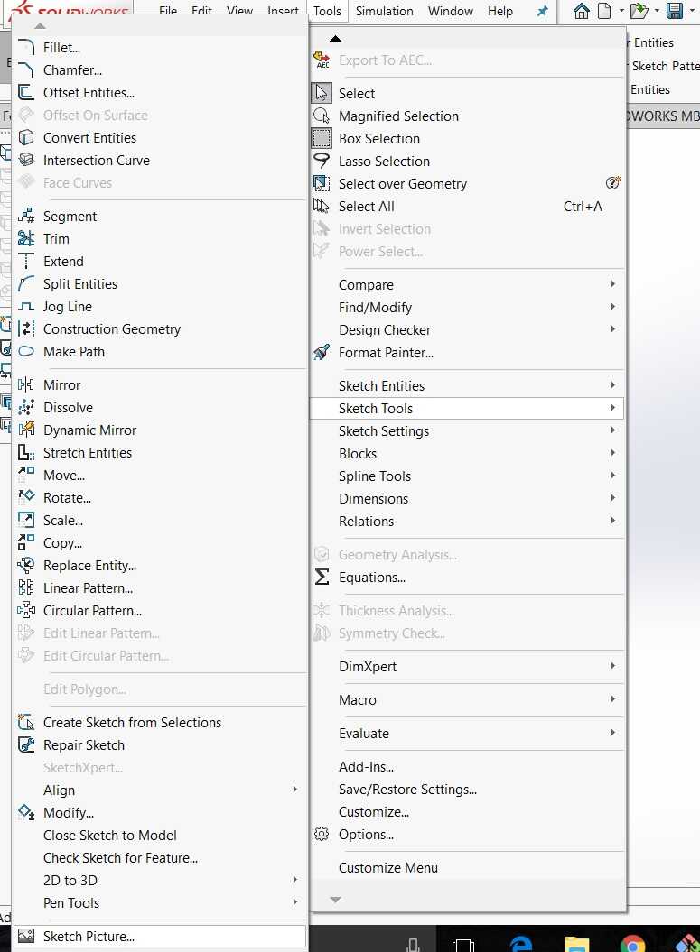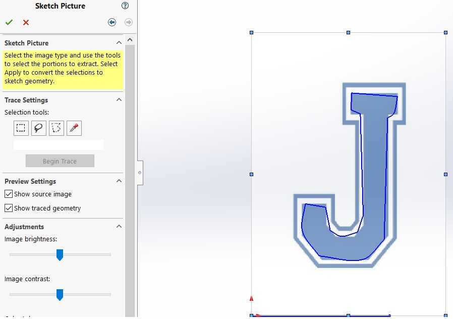 I looked for a way in Solidworks to trace these images and then trim them for better symmetry. I found an add-in called Autotrace. This can be found under Tools>Add-ins.