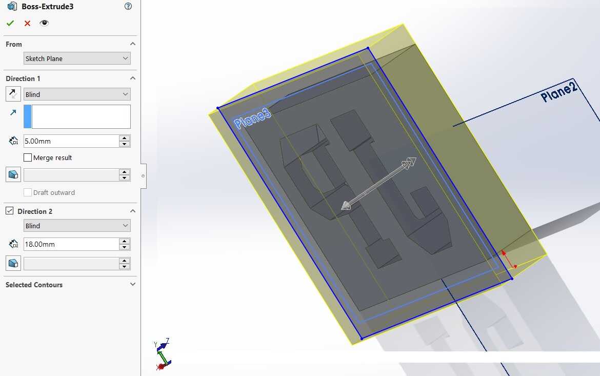 Same process as above was followed to create an plywood mold from silicone mold. A bounding box was created around the silicone mold. This box was extruded as per the image below.
