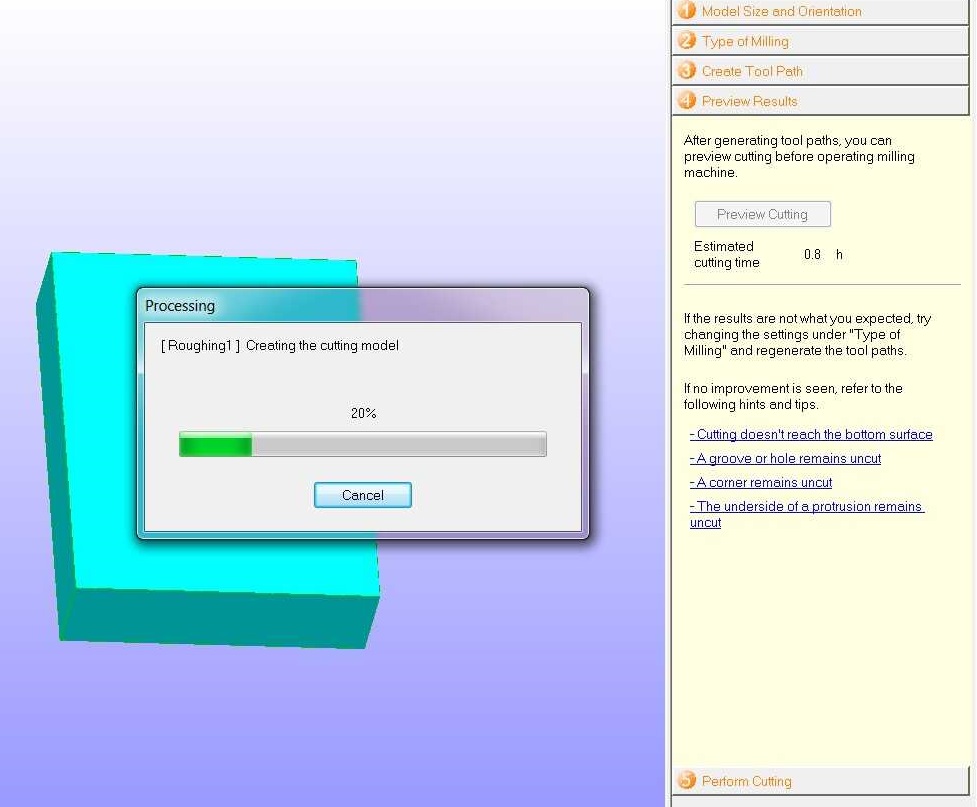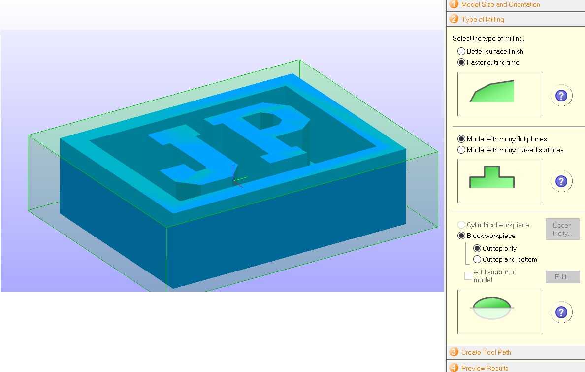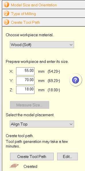 The size of the bounding box was decided here. Then the tool path was created.