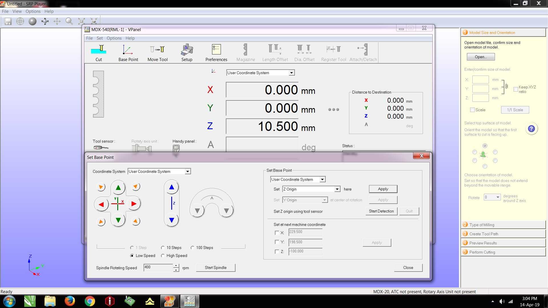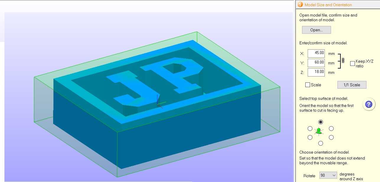 SRM Player software is used with the Roland MDX-540 to set the workpiece for cutting.