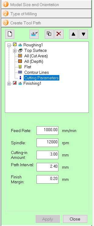 This shows the settings used for roughing operation, especially the feed rate and cutting in amount or depth of cut.
