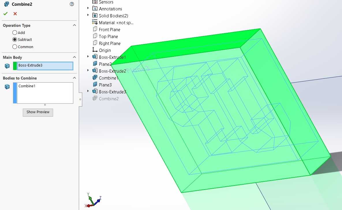 The casted CAD was subtracted from the bounding box to get the negative using the Combine feature.