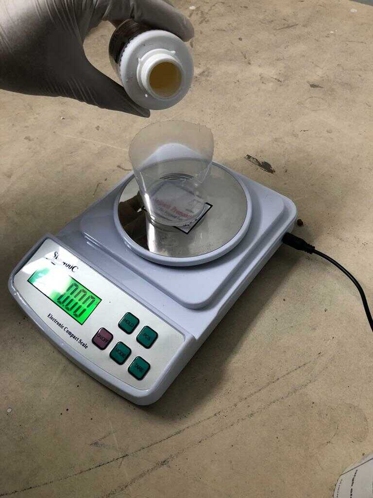 We used a weighing scale to measure the components and mixed them well for 5 minutes.
