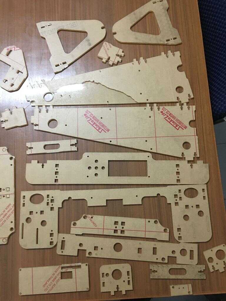I created dxf files from Solidworks for laser cutting which can be downloaded from here. Using these designs, I laser cut all these parts from the acrylic that we had available in our local Fab Lab.