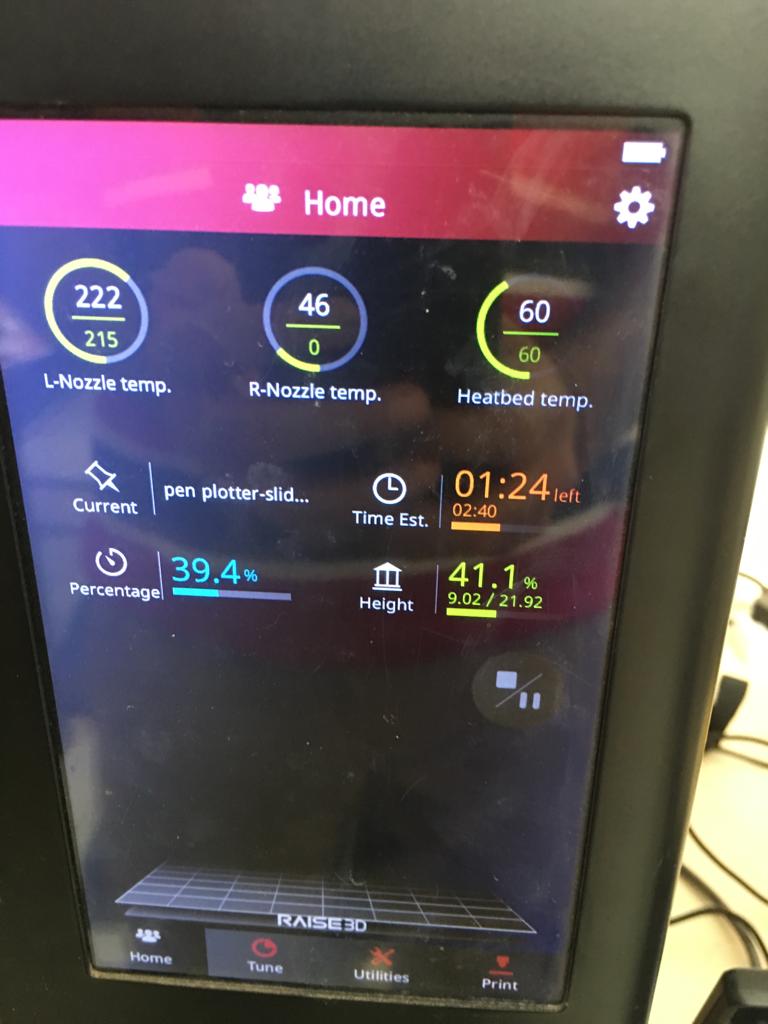 The 3d printer in my office was used to fabricate the slider support and the pen holder. This image shows the 3d printer.