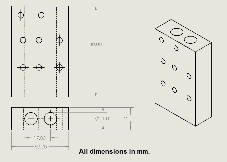 We had purchased a DIY kit for making a 3d printer which inspired my mechanical design. I found the 3d assembly of the drawings of this DIY kit which I laser cut for creating my mechanical frame. I had intended to tweak the cad model in Solidworks to account for the kerf.