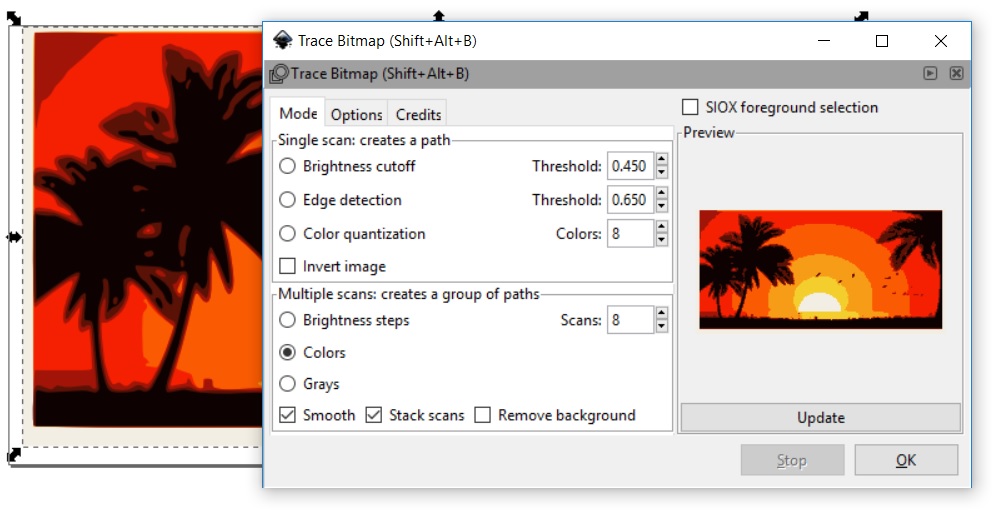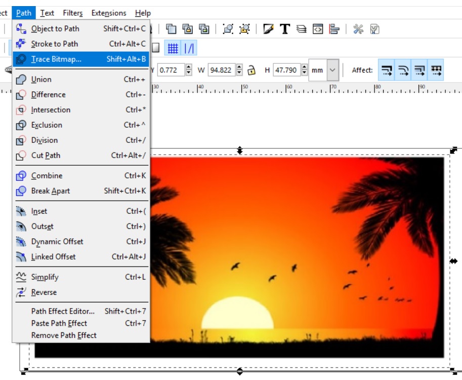 Now we need to vectorize this bitmap using the trace bitmap feature.