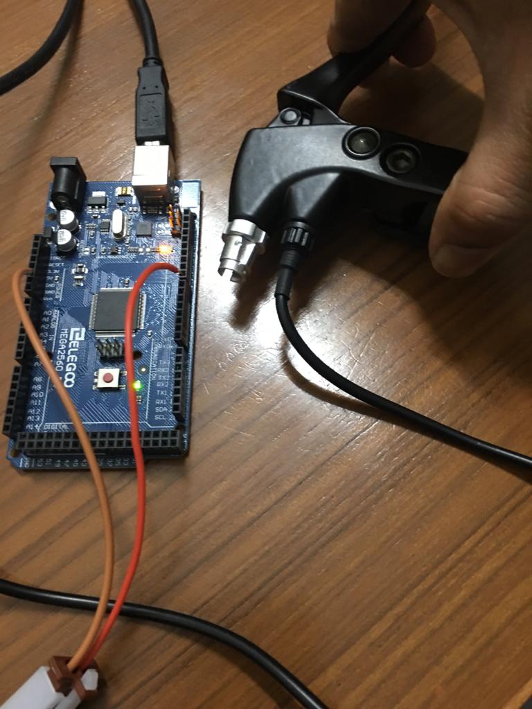 I connected the throttle wires to arduino. The wires went to 5V, ground and analog read pins.