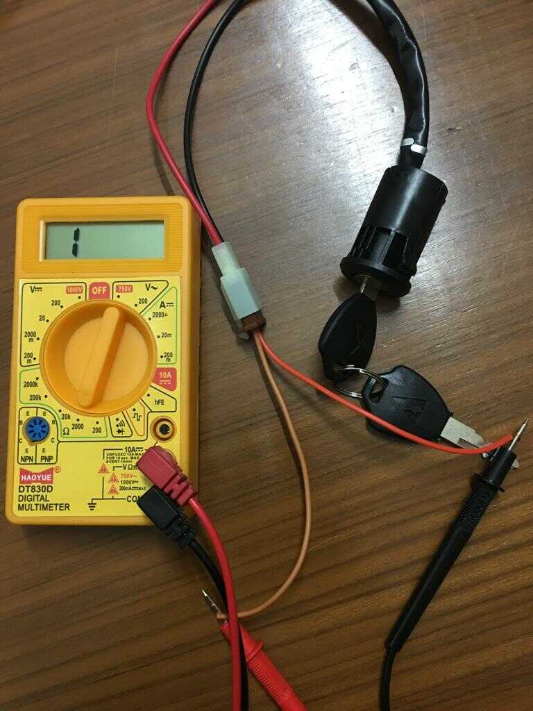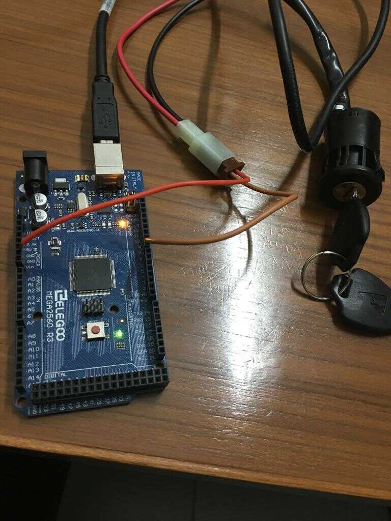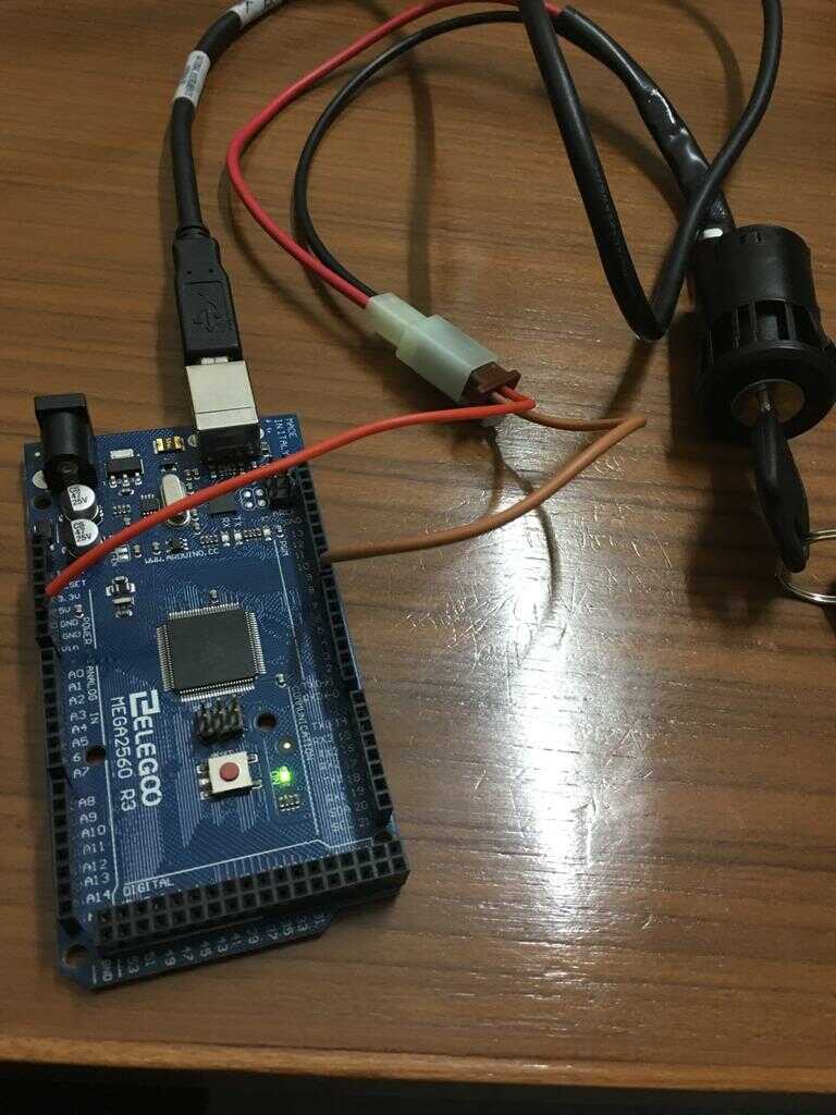 The ignition key equivalent is a switch. I tested it with mutlimeter and then the arduino using the input pullup resistor.