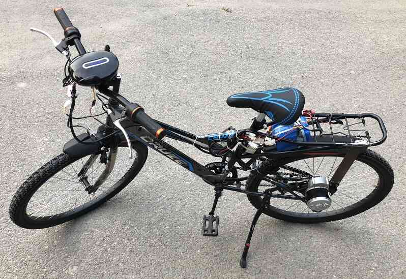 After testing the bike kit, I went to a bike mechanic to put the bike kit on the bike. I was initially planning to do it myself but since the hub of the bike had to be replaced and spokes had to removed from the older hub and put into the new hub, I took help. I also asked them to change the brakes due to safety reasons. I will learn to work with the brakes myself later. I will add more pictures about this process later. The assembled bike pictures have been shared below.