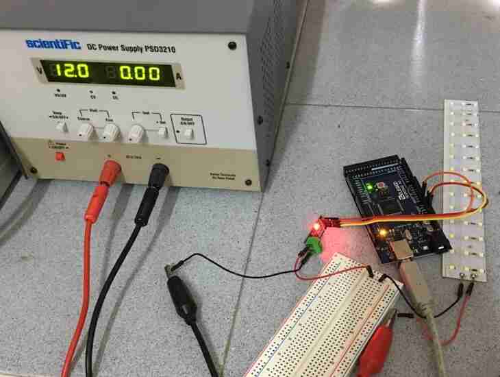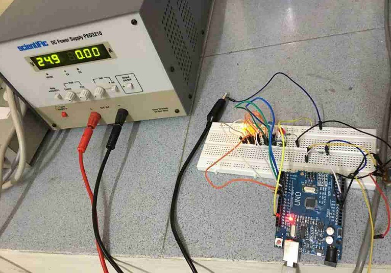The circuit was implemented on the breadboard using an Arduino Mega 2560.