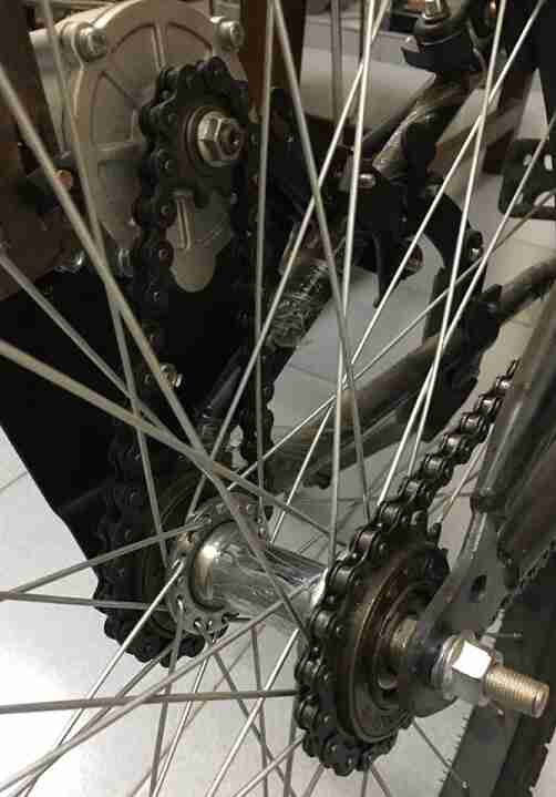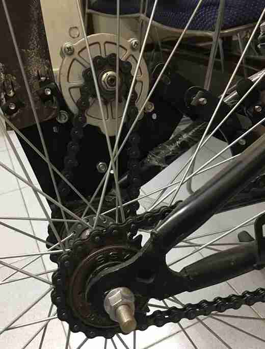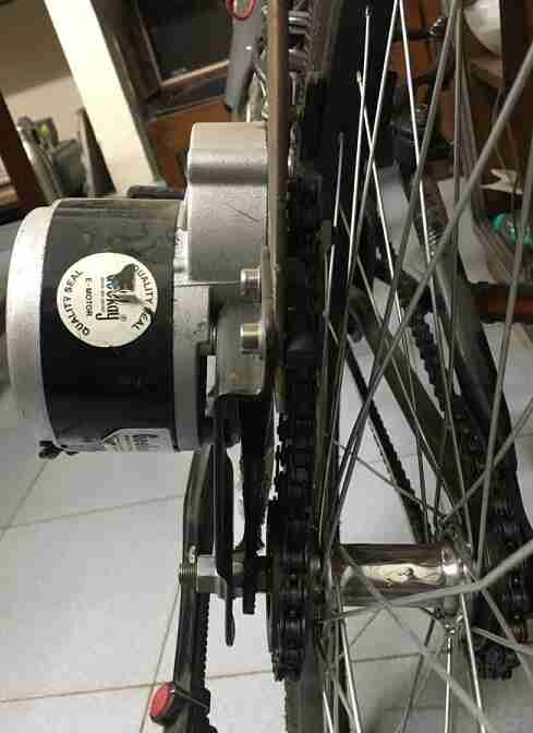 The next few images show different views of how the motor was mounted on the bike and the bike sprocket was connected to the hub of the bike.