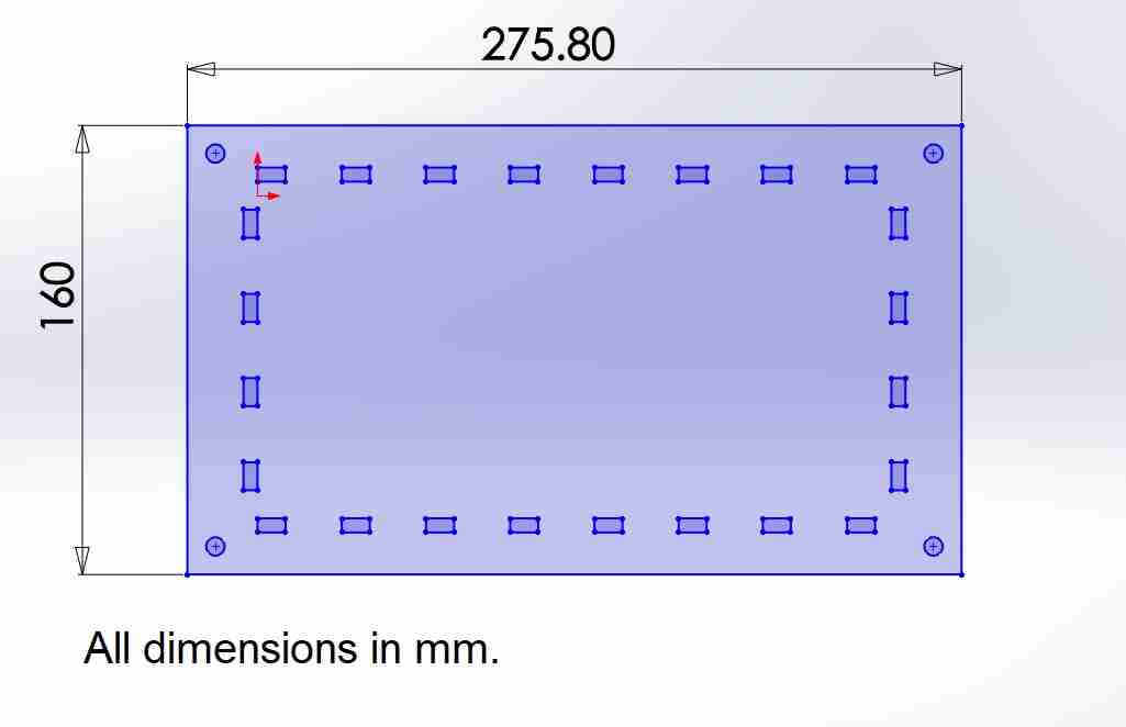 The below images are for the top and the bottom plate of the case. The bottom plate has a thickness of 10 mm for extra strength and the top plate and the walls of this case have a thickness of 5 mm.