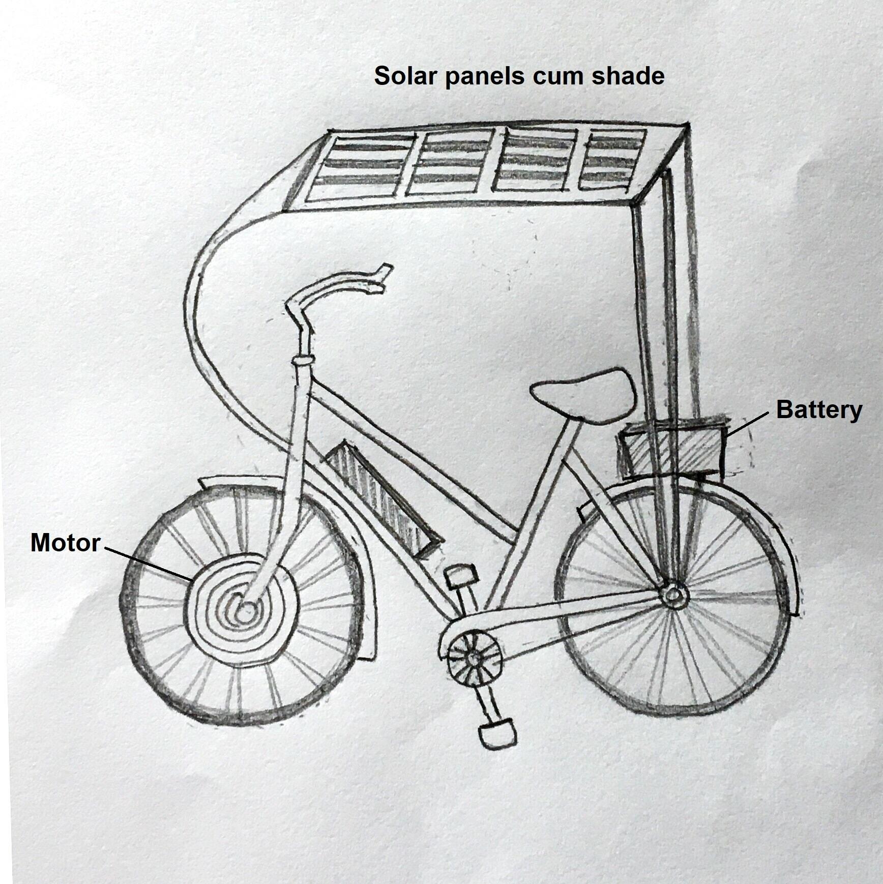 As outlined in my project proposal, I am working on developing a solar powered, electric bike conversion kit for a bicyle. The solar panels double up as a source for battery power and a sun-shade.