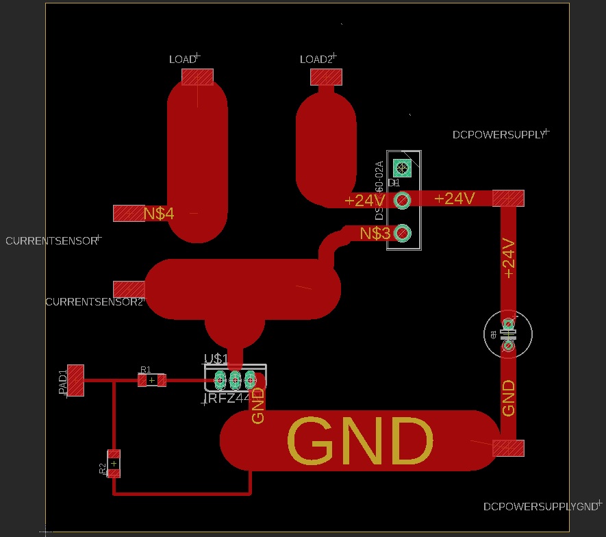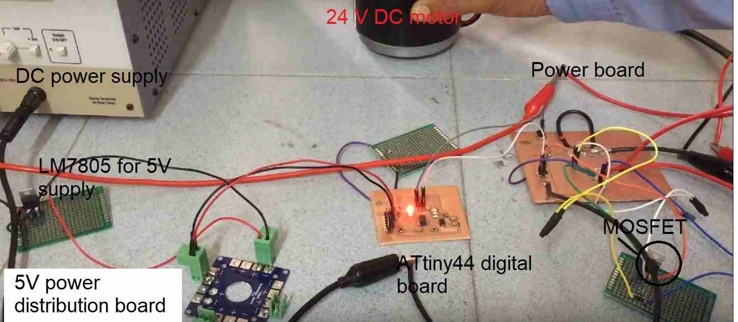 The output devices were 24 V DC motor and 24 V LED strip. The details of the power board are given in one of the sections above.