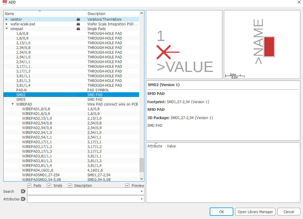 At that time, I didn’t know how to add solder pads in the schematics. So, I searched on the internet and found a library(wirepads) on diymodules.org. In this library, there are many types of soldering pads available for use. On pads, I soldered the sensors which already have pin-headers mounted on them.