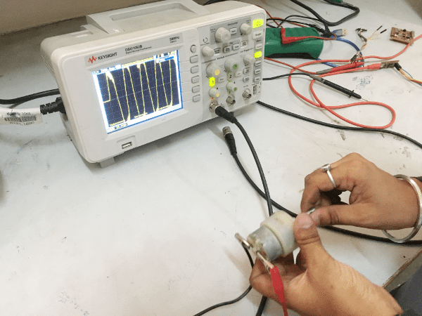 We measured the analog voltage generated by a motor when rotated manually.