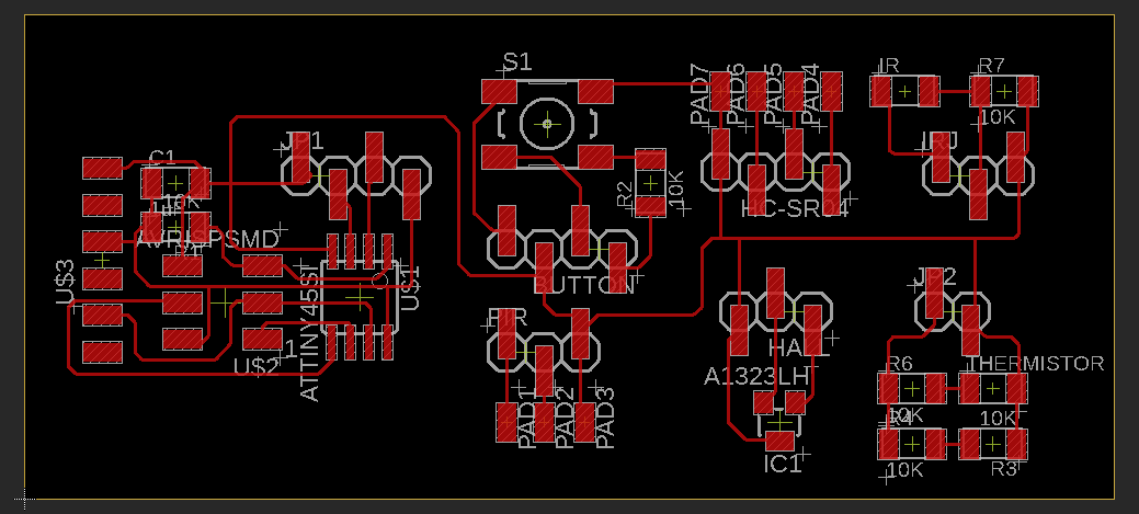 - I found PIR, Distance sensor and switch in our lab. As I used smd versions of the temperature sensor, IR sensor and hall effect which were not available in the lab so I left these components currently. I will purchase and solder them later.