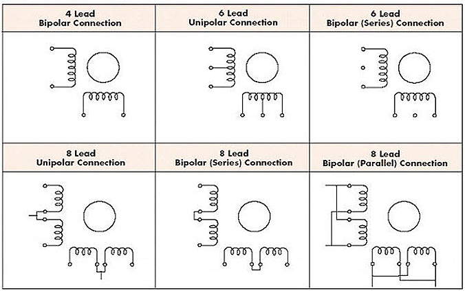 In bipolar stepper motors, there is only a single winding per phase. The driving circuit needs to be more complicated to reverse the magnetic pole, this is done to reverse the current in the winding. This is done with an H-bridge arrangement, however, there are several driver chips that can be purchased to make this a more simple task.