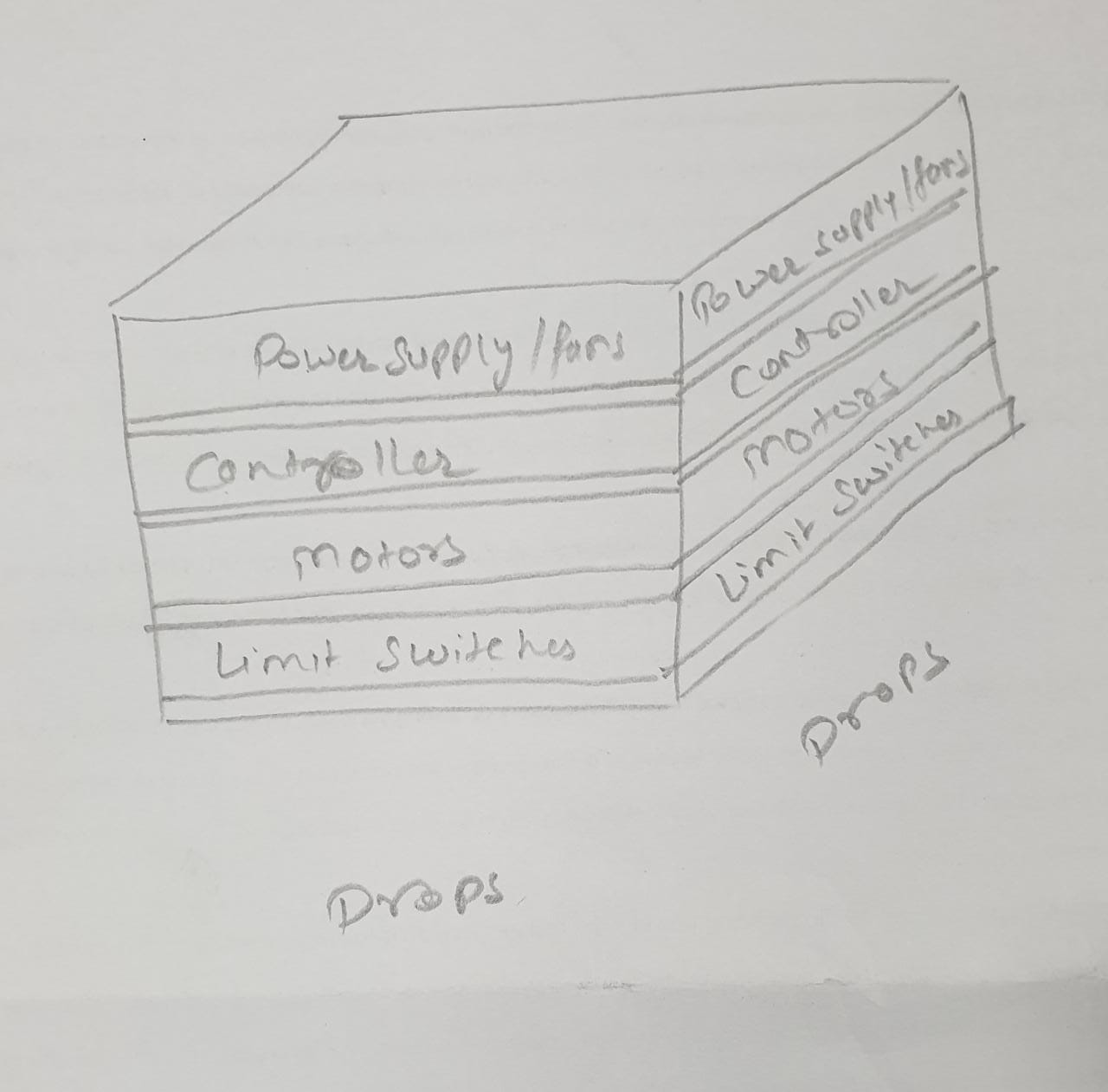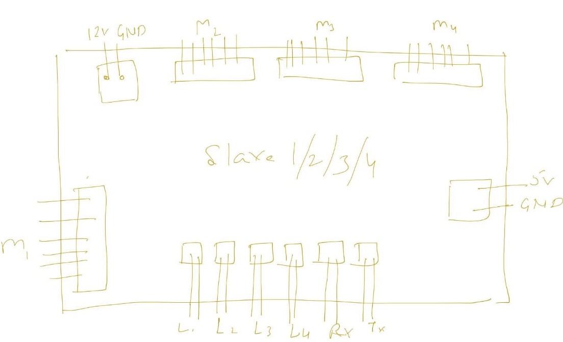 Wiring diagram of motors, limit switches, power supplies and rx/tx with slave boards.