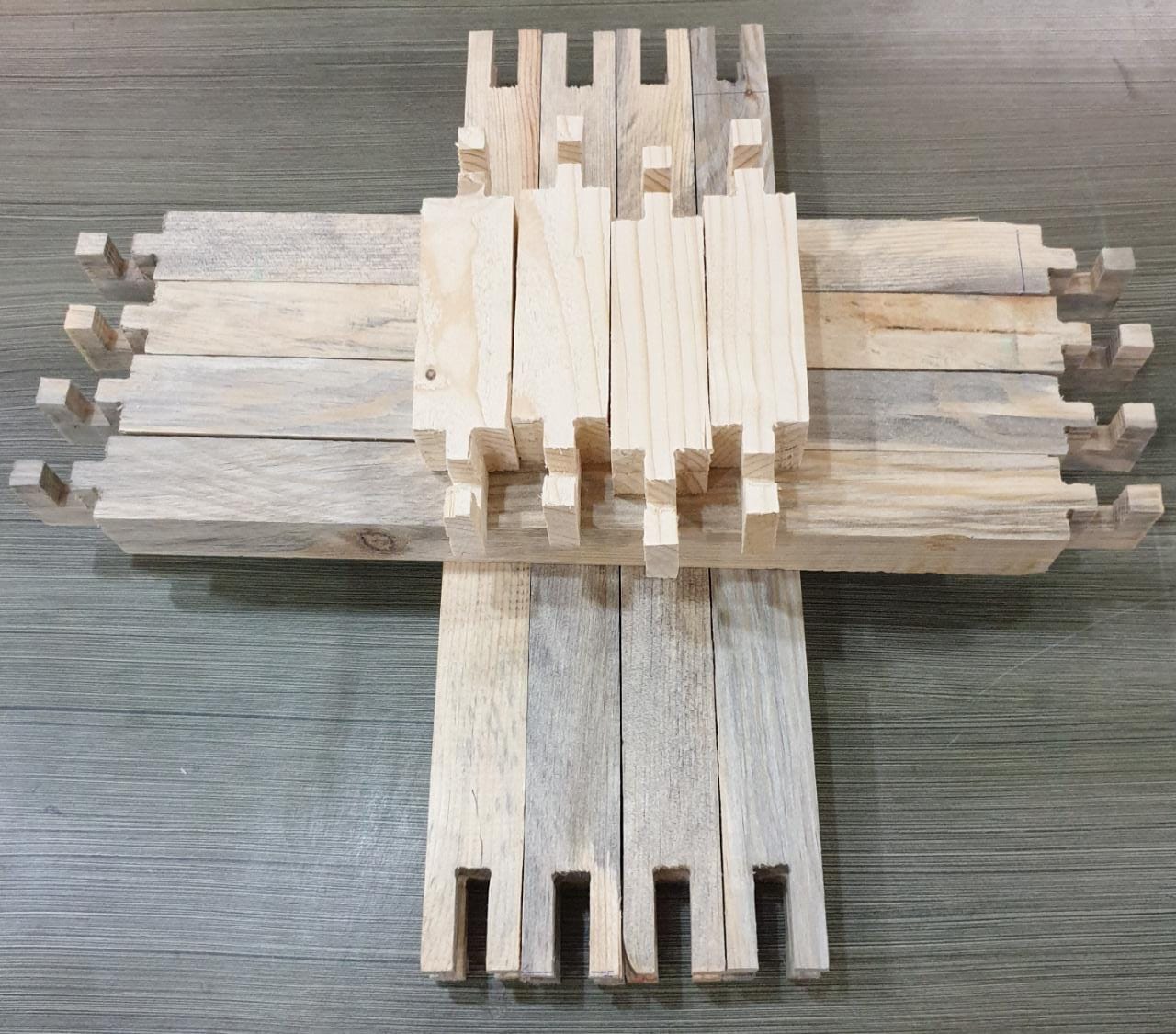 I started by collecting the pine wood blocks and cutting them in the required sizes which were 476mm(8 pieces) and 188mm (4 pieces).