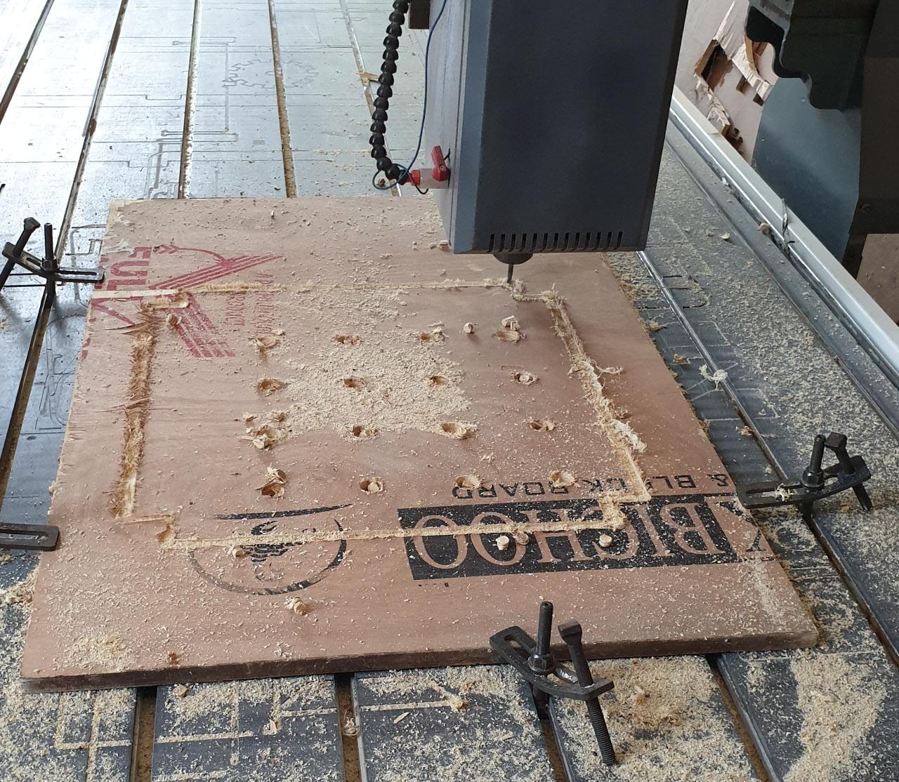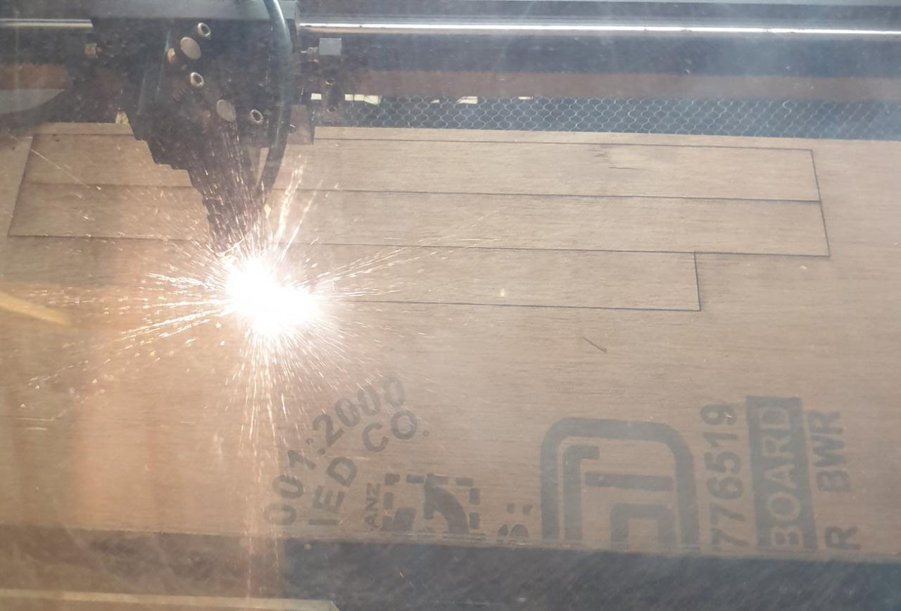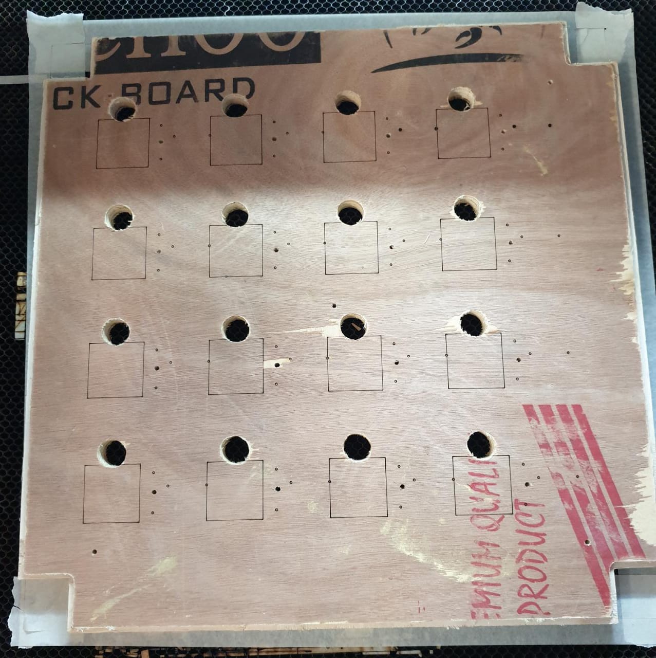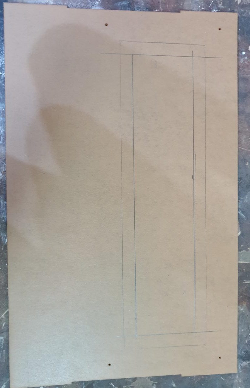 Then, marked the motors positions and on the top side and limitSwitches position on the bottom side using laser cutter.