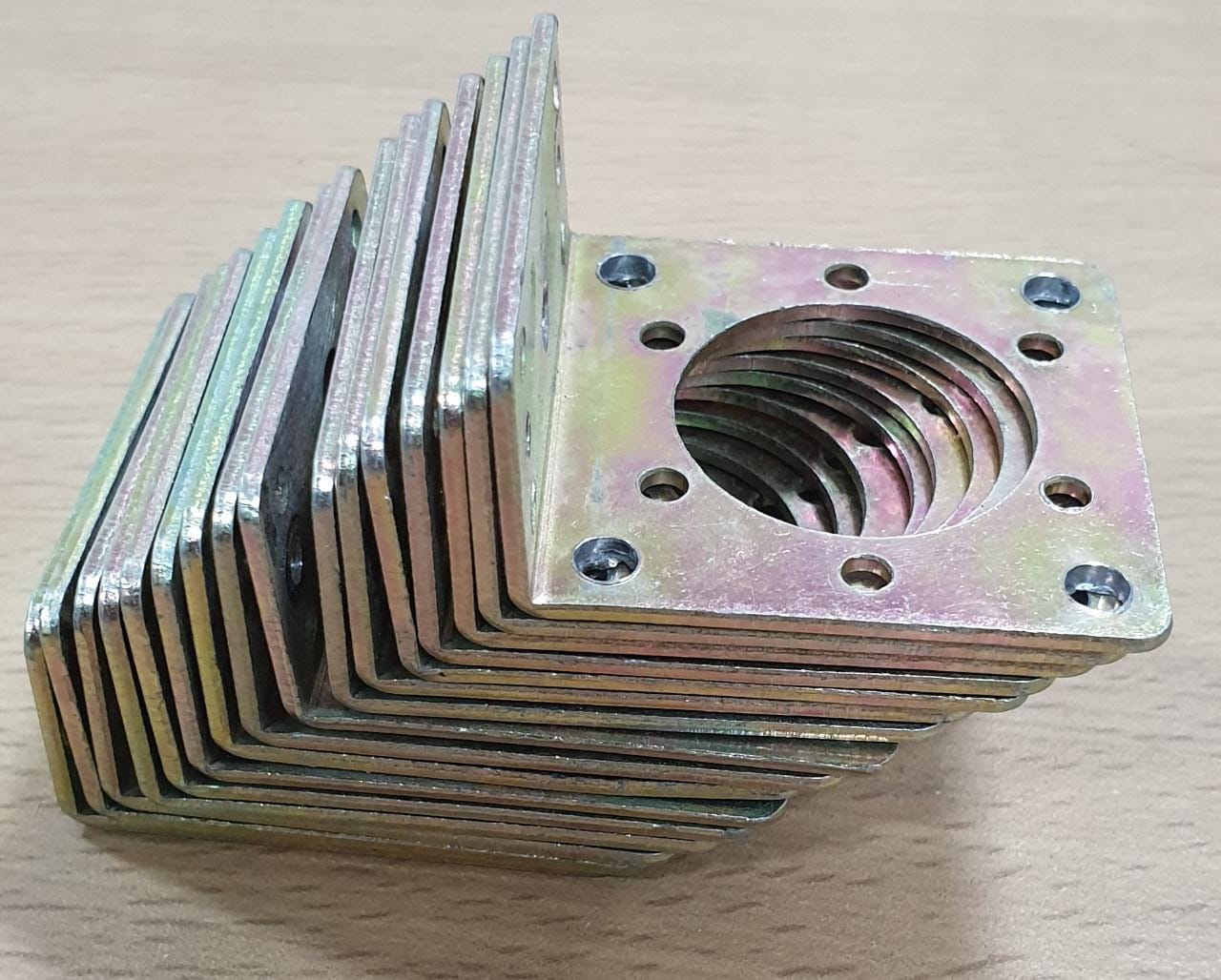 This is the part on which motors rest. The size of the base 476X476 mm and thickness 19mm. It has 3 sizes holes. 16 holes of 3mm from which the thread go down, 16 holes of 8mm dia from which the limit switches wires would pass, 5 holes of 4mm diameter to align the base with this motor base. First I cut the main features on CNC machine.
