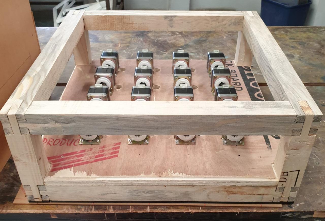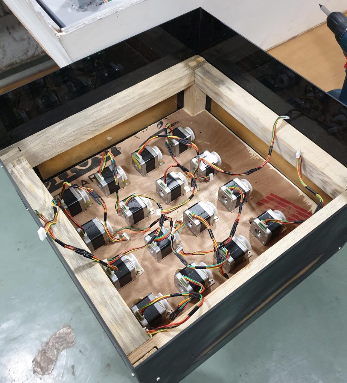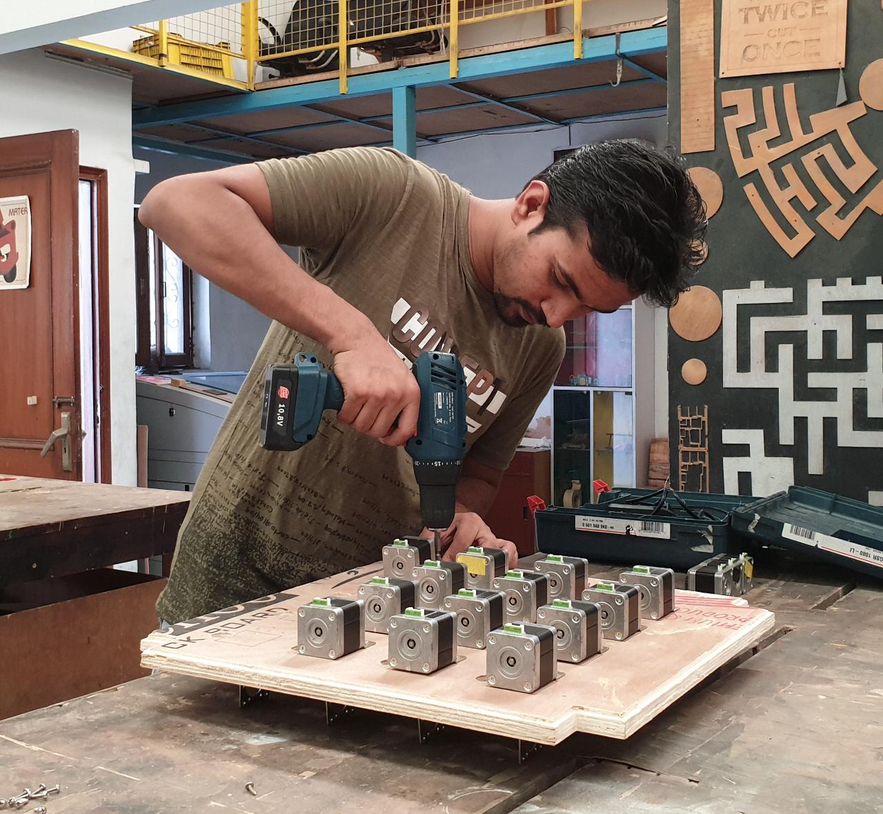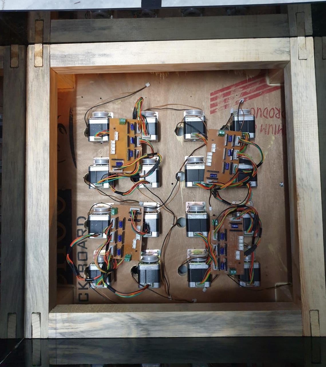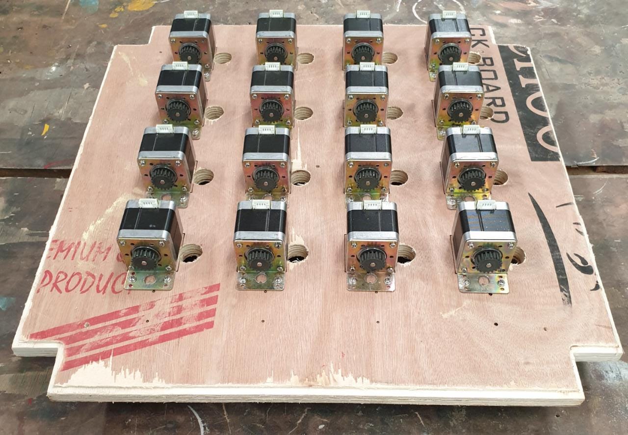Next was the motors turn. I flipped the board and using same screws, fixed all 16 motors at their positions.