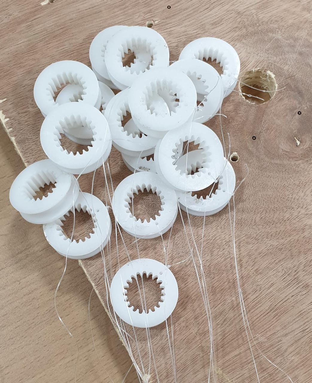 I cut 16 threads of 2meters each and wrapped on the bobbins. and then inserted the bobbin on the shaft of the motor.
