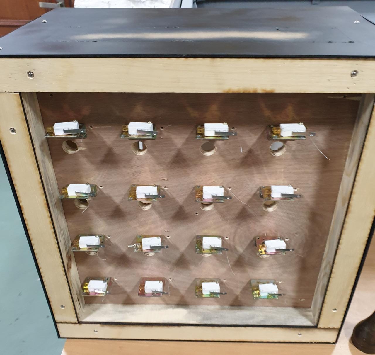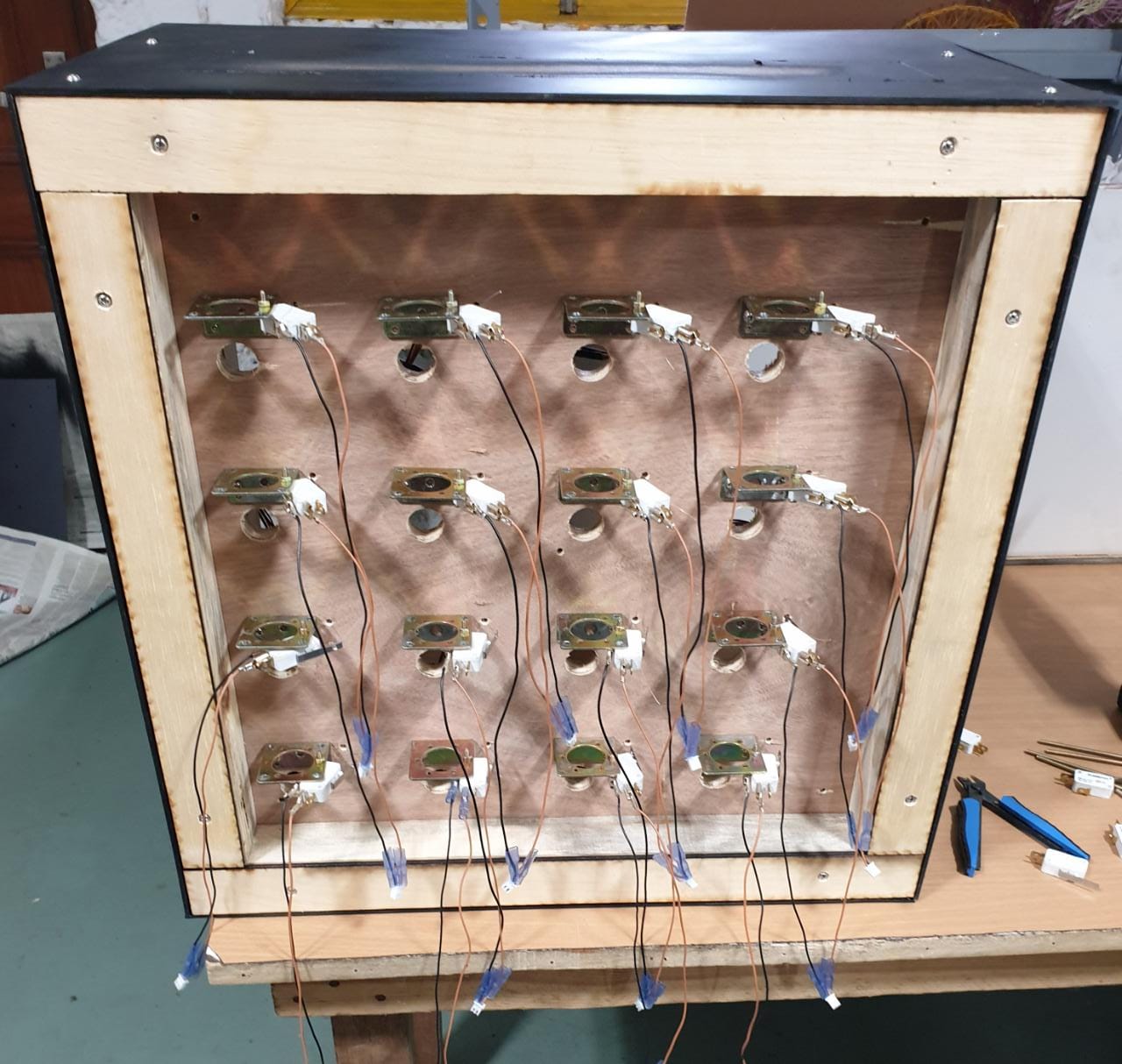 Then I mounted the swithces using 3 mm screws on the metal strips which were screwed on to the base earlier.