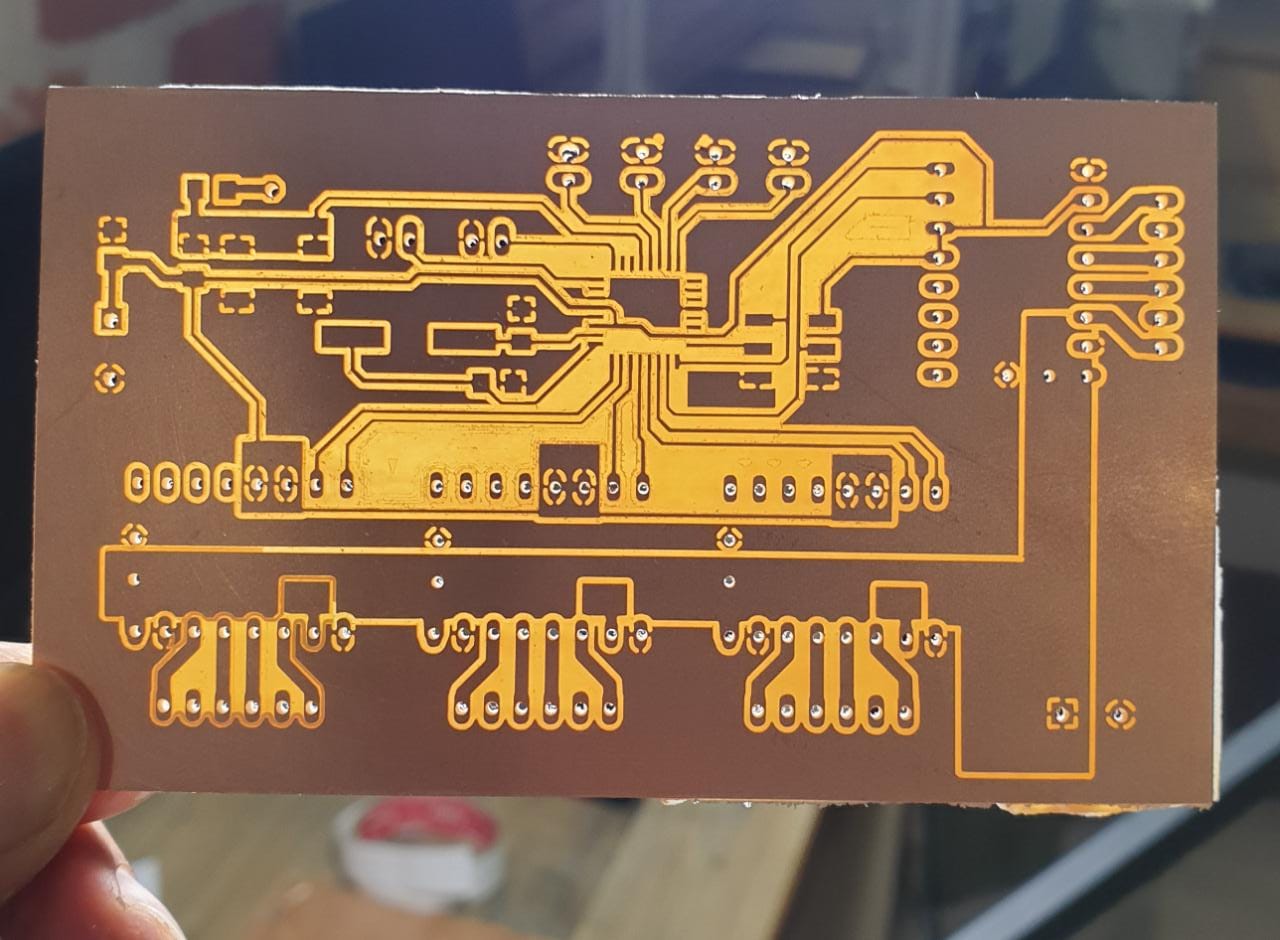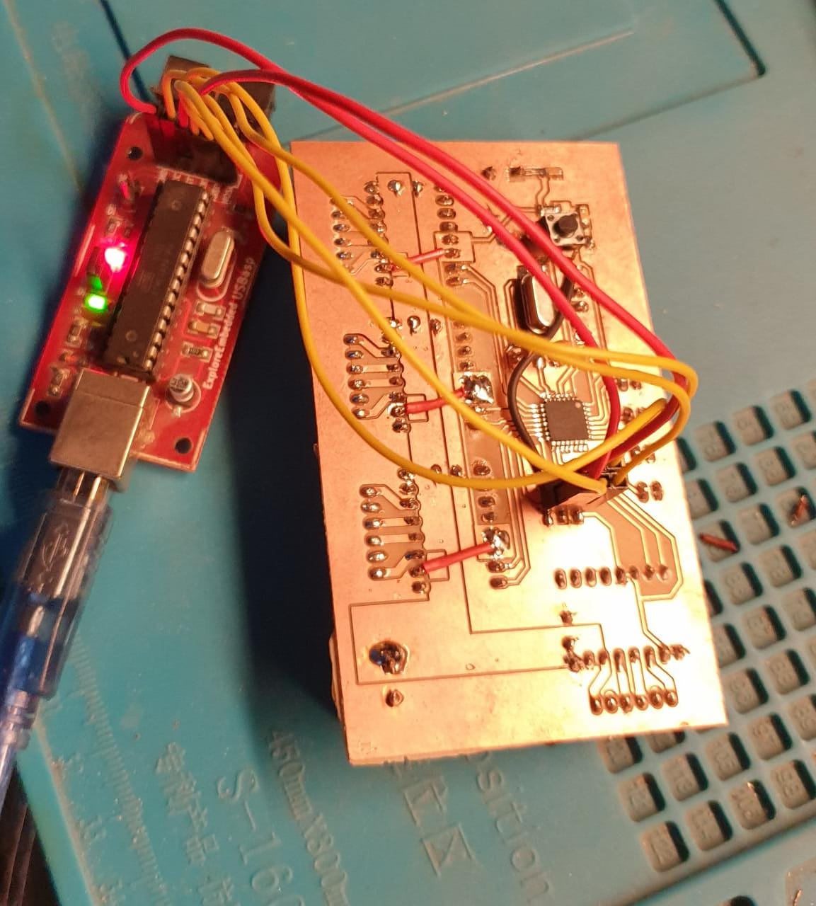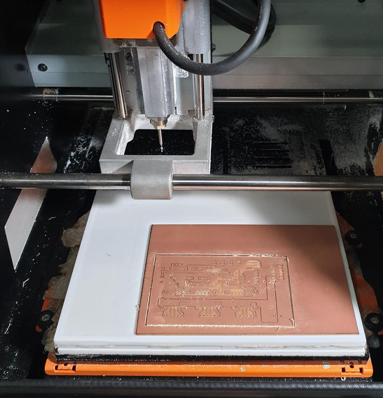 While milling one of my board lifted off of the platform. Fortunately this was while cutting the outline and it didn’t cut the traces. I removed the board from the machine to check and tried cutting manually using a blade and the moment I applied a little force, it broke from one corner. I just didn’t want to mill another board so I welded the two parts using soldering iron and solder ;)