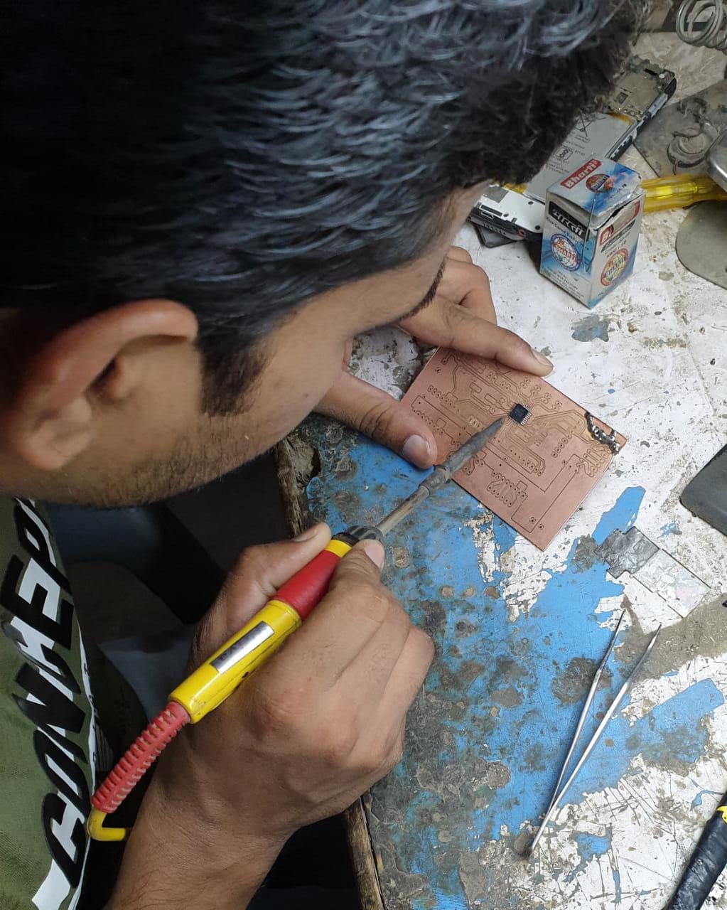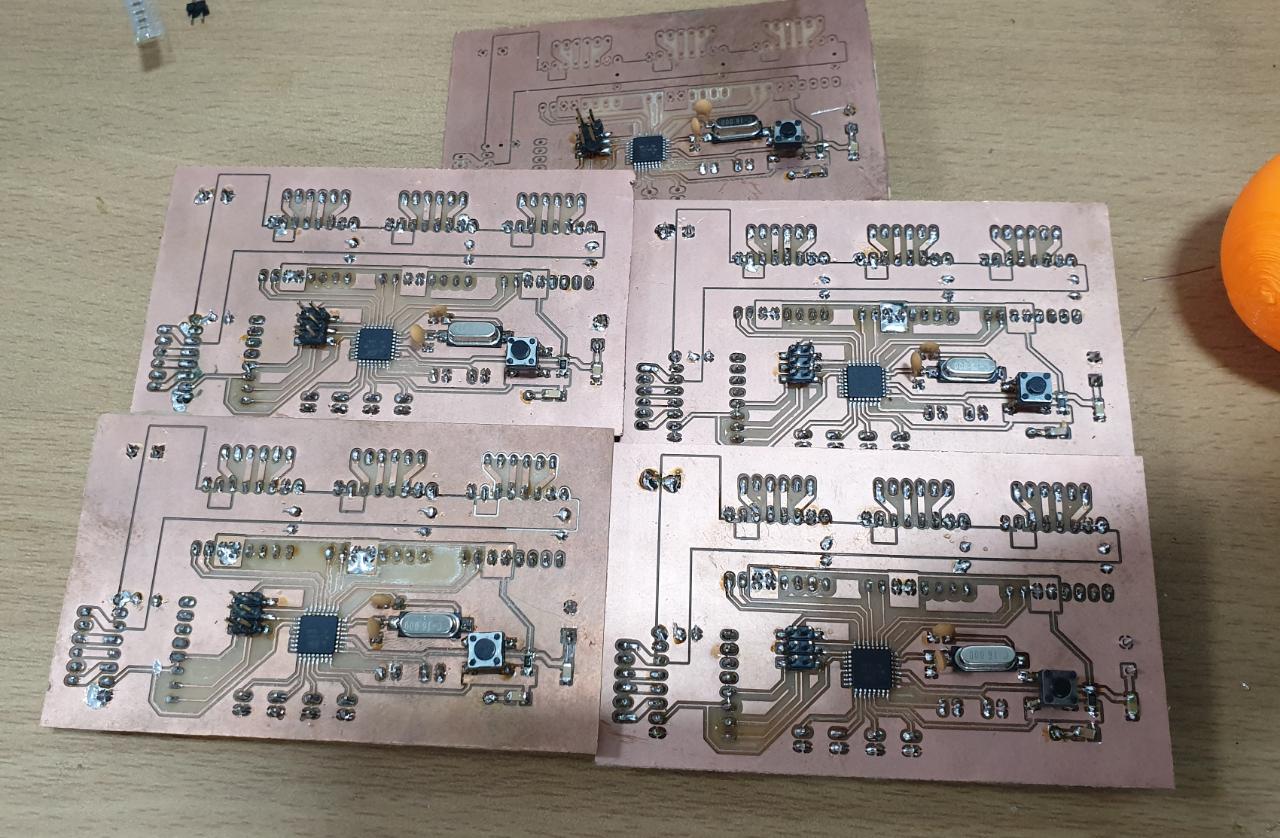 In 4 PCBs I had to solder all the components, but in the fifth one which is master, I only soldered the microcontroller with other necessary components as the purpose of this board is just to communicate with the slaves.There’s no motor connected to master.